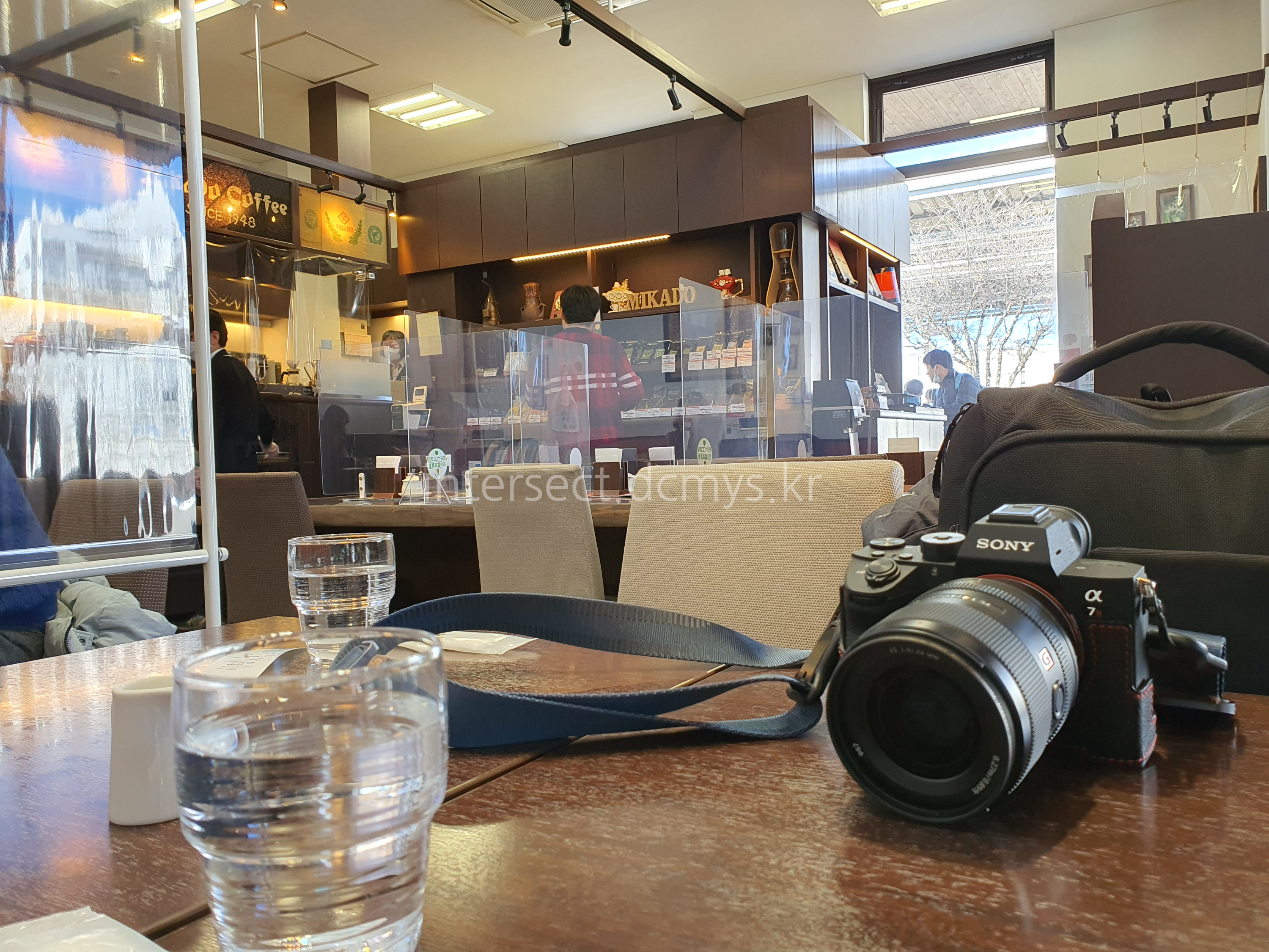 커피집에 와서 물을 마셨습니다.