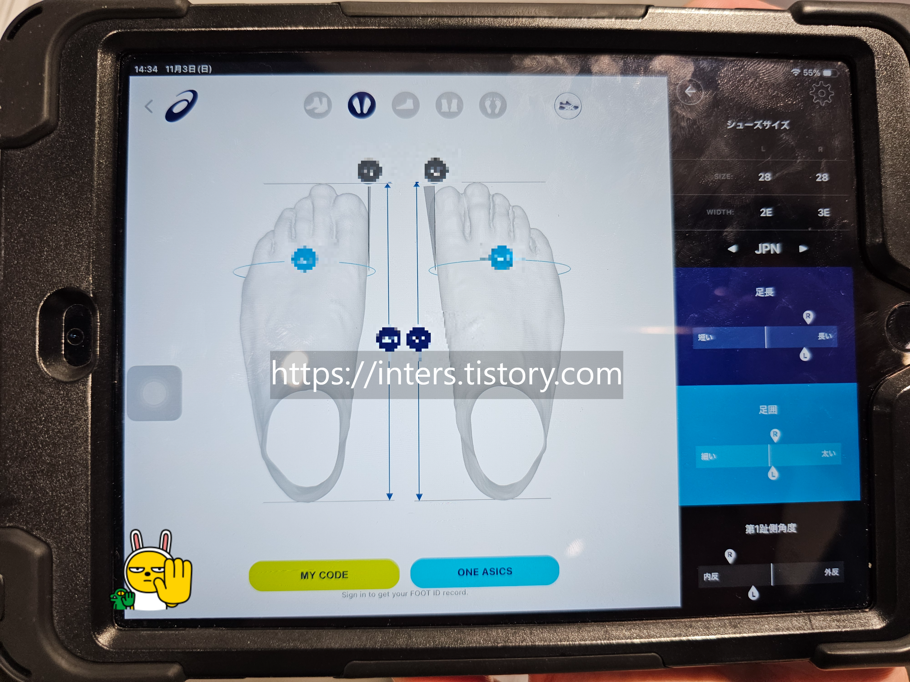 오사카 스토어로 간 이유는 족형측정. FOOT ID라고 불리는 서비스입니다.